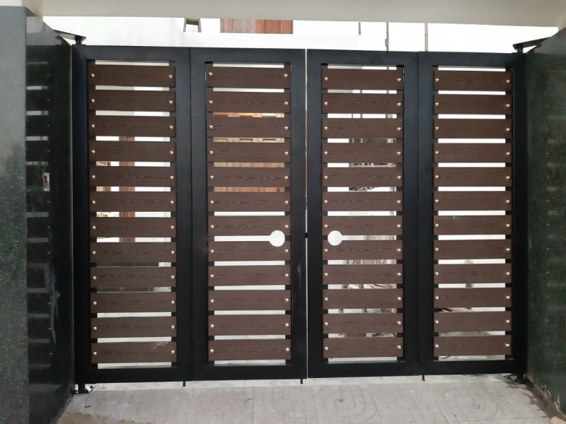 Cửa cổng gỗ nhựa thường rất được ưa chuộng để sử dụng cho nhà phố và biệt thự vì rất sang trọng, tuỳ theo loại cửa cổng mà lựa chọn vật liệu phù hợp để sản xuất. Thông thường thì cửa cổng gỗ nhựa được sản xuất gồm khung bao là sắt hộp sơn tỉnh điện, trong sử dụng vật liệu gỗ nhựa để ốp vào tạo thêm được vẽ đẹp và sự chắc chắn.