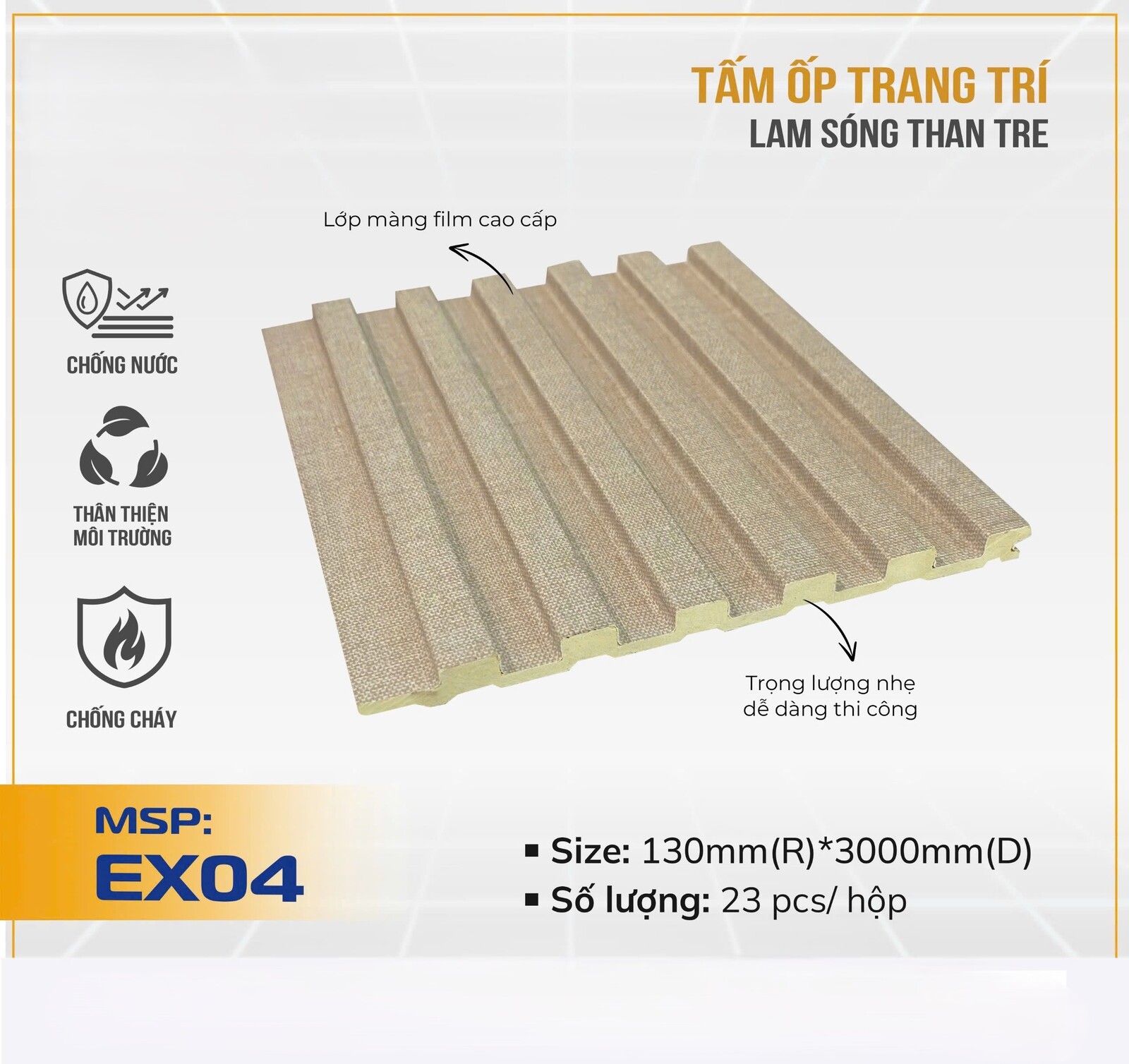 GIỚI THIỆU VỀ DÒNG VẬT LIỆU TẤM ỐP SỢI THAN TRE EW LAM SÓNG