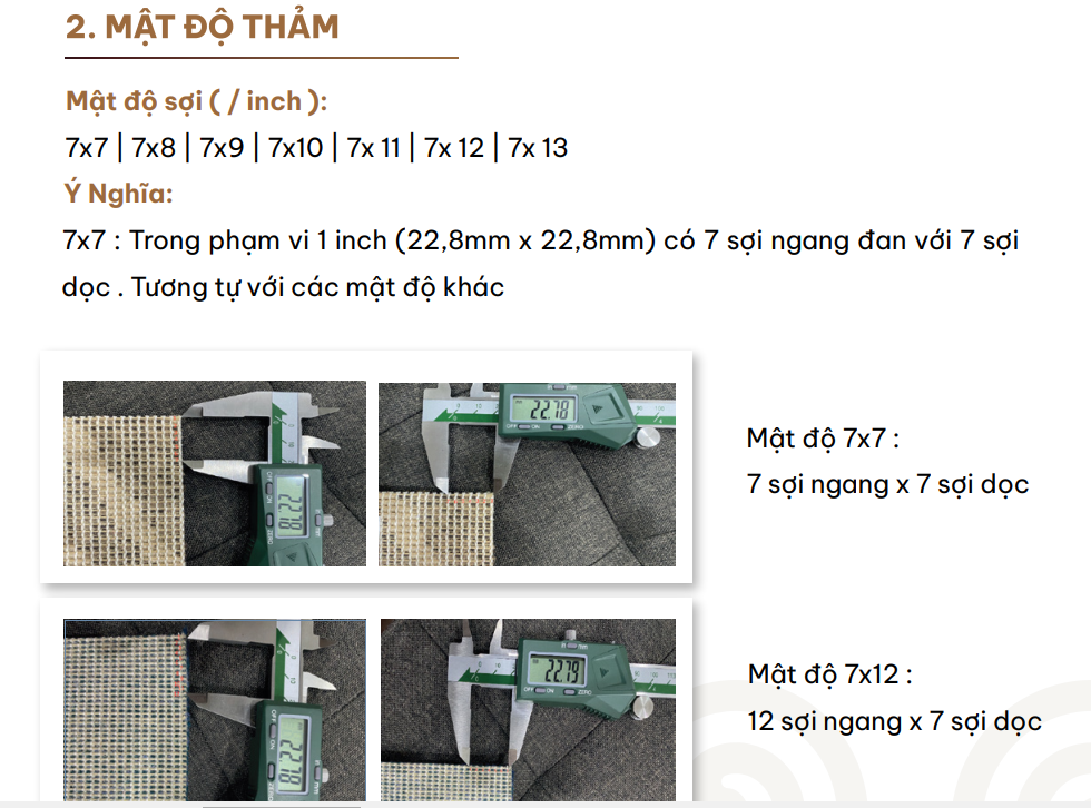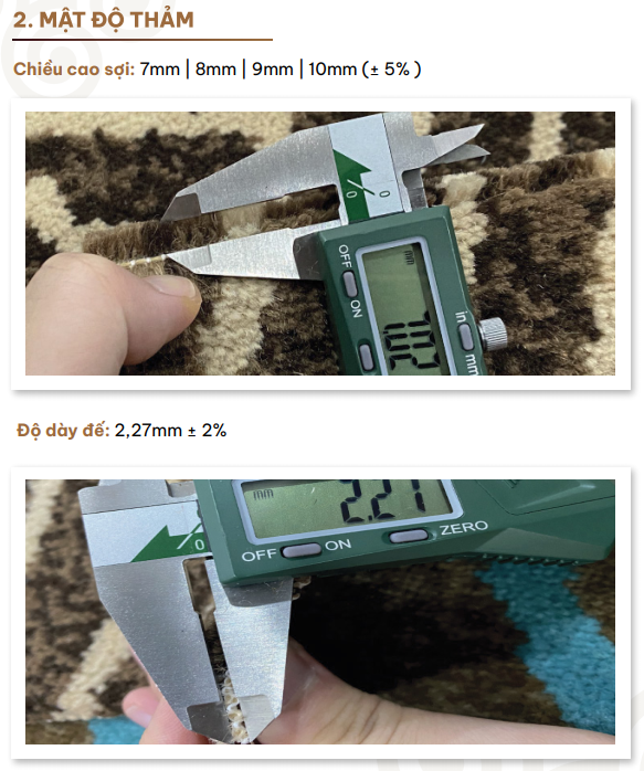 | Chiều cao sợi (Pile Height): | 7-10 mm (+/-5%) |