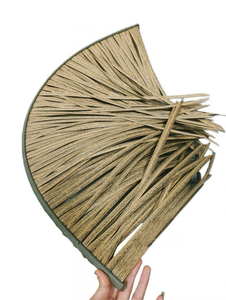 | Kiểu sợi: | Sợi dệt, sợi dẻo được mô phỏng khi lợp lên giống với lá cọ, lá dừa tự nhiên đã qua sử dụng 2 - 3 năm. |