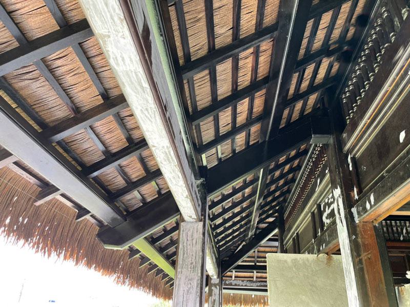 - Khung xương lito: Khoảng cách các thanh lito là 15 – 17cm (tương ứng với mật độ lợp rơm là 14 – 12 tấm/m2). Riêng 3 hàng lito đầu tiên cách nhau khoảng 7cm để tạo diềm mái.