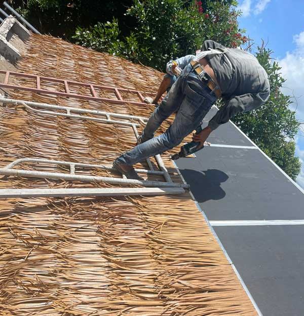 Lợp mái tranh lá nhân tạo lên trên mái phụ