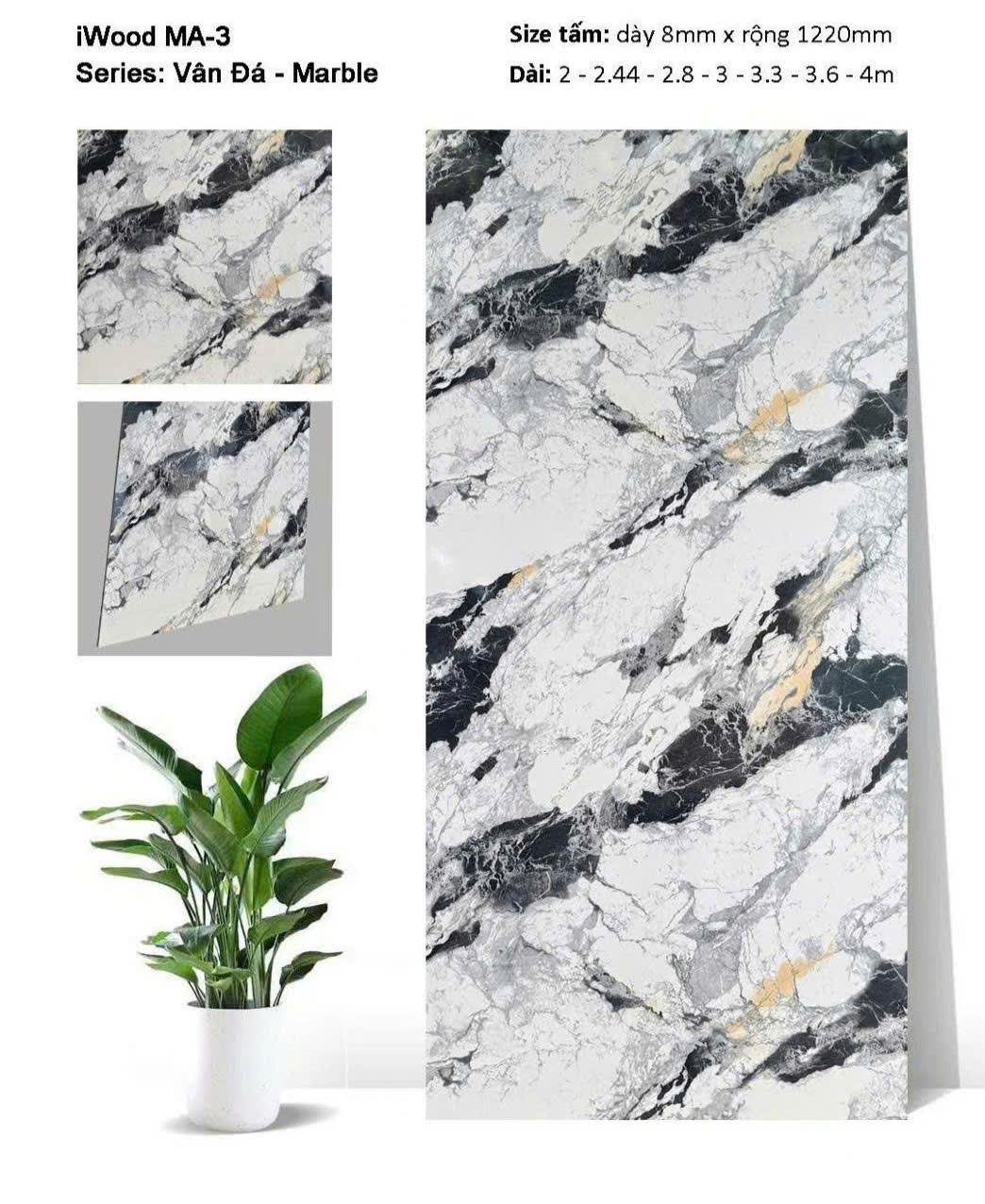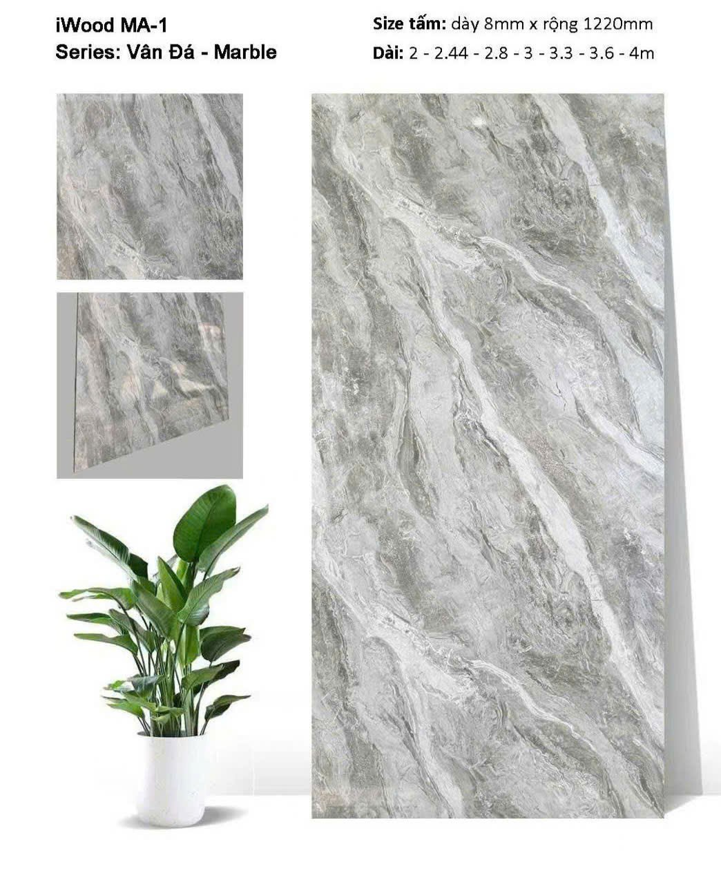 | Bề mặt: | Film PVC Vân Đá Marble và 2 lớp chống va đập |