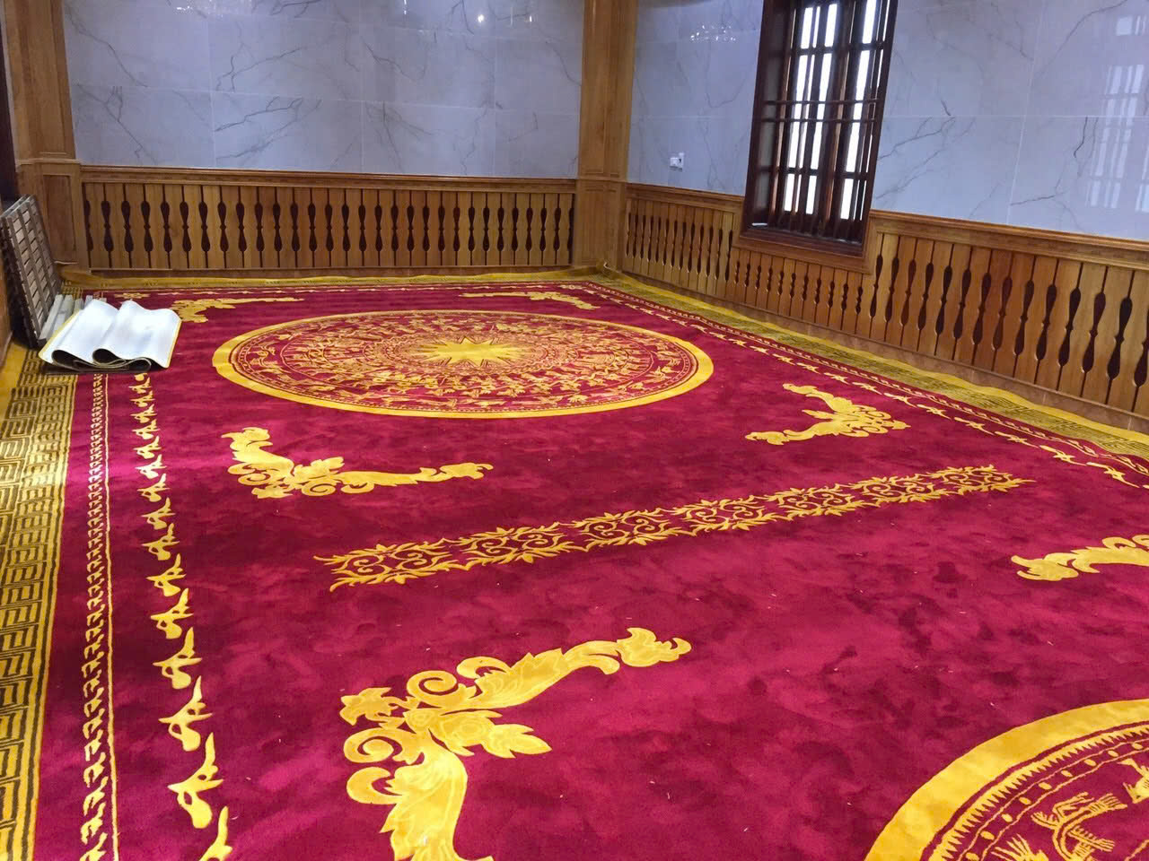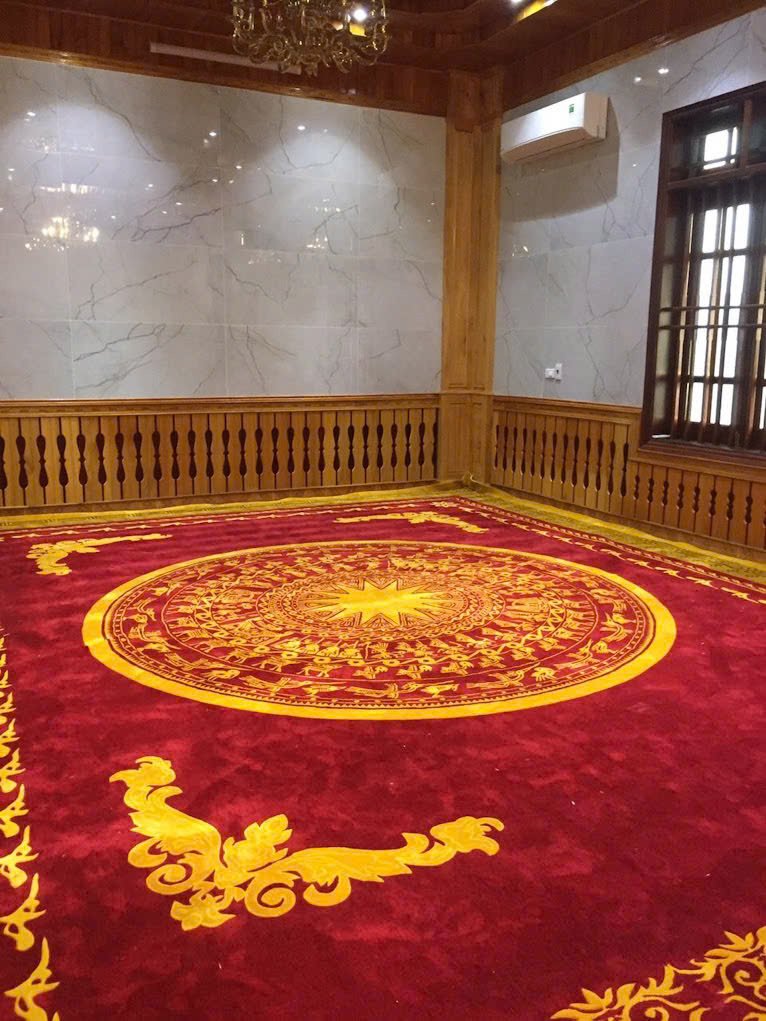 Thảm khánh tiết được dệt thủ công từ sợi acrylic là dòng sợi len cao cấp, sợi acrylic là sợi tổng hợp được làm từ polymer được tạo ra bằng cách trùng hợp acrylonitril hoặc đồng trùng hợp với các monome khác. Nó có một kết cấu mềm mại và ấm áp, khả năng nhuộm, hút ẩm và chống mốc cực kỳ tốt. Bởi vậy nó có các ưu điểm vượt trội hơn so với các chất liệu sợi khác nên thảm khánh tiết dệt tay acrylic là một lựa chọn hợp lý cho phòng khánh tiết cần sự sang trọng.
