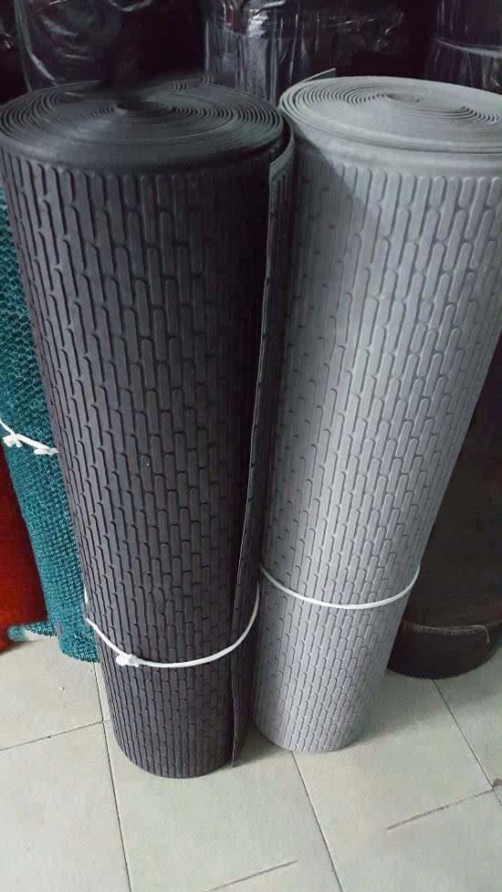 Thảm nhựa que dập nổi là là loại thảm nhựa chống trơn được dùng để trải trên những mặt sàn đọng nước, trơn trượt như sàn kho bãi, sàn sản xuất, sàn chế xuất, khu vực hậu cần nhà hàng, khách sạn, trải nhà vệ sinh, trải hồ bơi v.v...