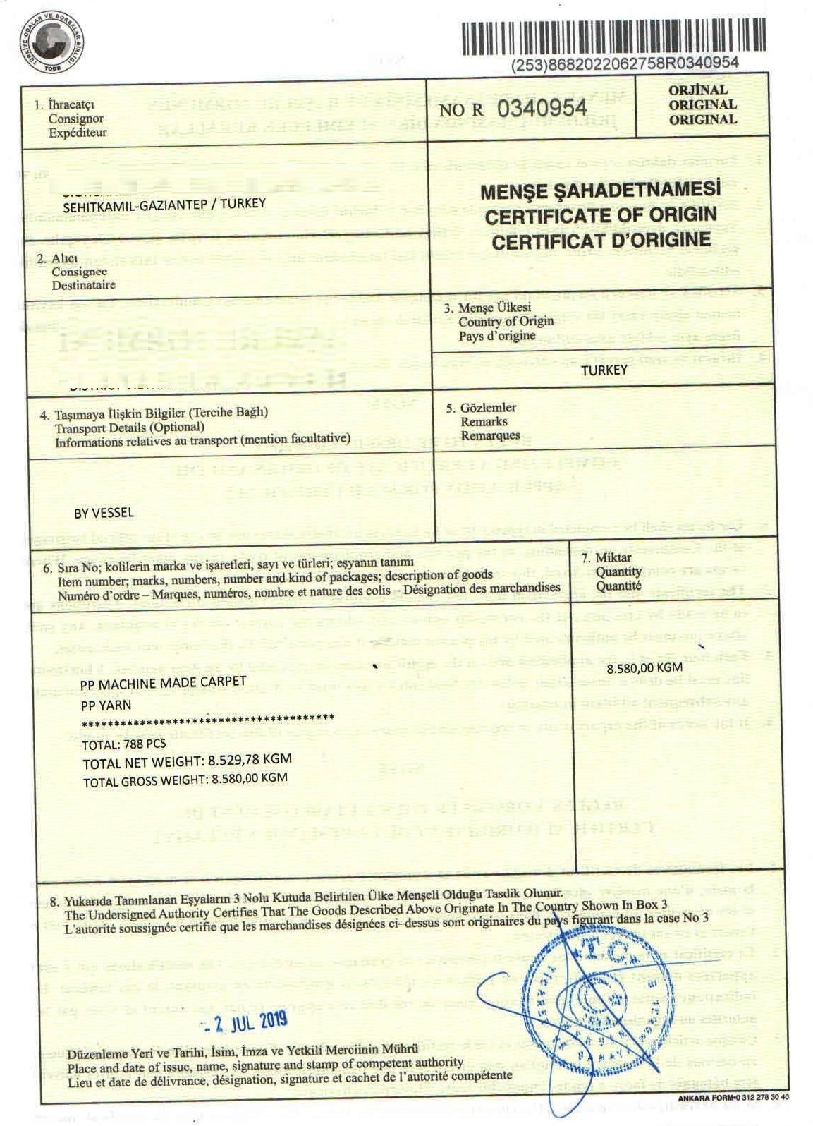 CHỨNG CHỈ XUẤT XUẤT XỨ CỦA SẢN PHẨM