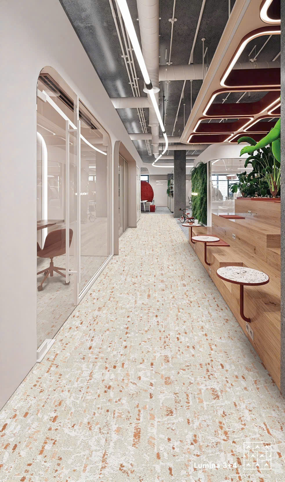Về mặt hoa văn thì dòng thảm trải sàn này có kiểu hoa văn kẻ sọc rất đơn giản và hiện đại nên hầu như phù hợp với nhiều dạng công trình ngày nay như các công trình văn phòng làm việc hay các công trình khách sạn.