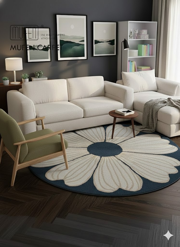 Thảm trải sàn tròn lông cừu là dòng thảm trang trí kiểu hình tròn để trang trí cho phòng khách hay để đuôi giường ngủ. Dòng thảm này rất mềm mại, nhẹ nhàng và phong cách hiện đại, ấm cúng. Mặt dưới thảm là lớp cao su non thảm chống trượt với các hạt cao su giúp tấm thảm dính chặt vào sàn nhà hơn. Thảm trải chân giường được làm từ 100% Lông cừu rất mềm mại, ấm áp và dễ dàng vệ sinh khi sử dụng. Thảm lông cừu rất mềm mại nên rất ấm áp vào mùa đông nhất là khi ngồi làm việc hay xem tivi, nhất là lúc bước xuống từ giường khi ngủ dạy.